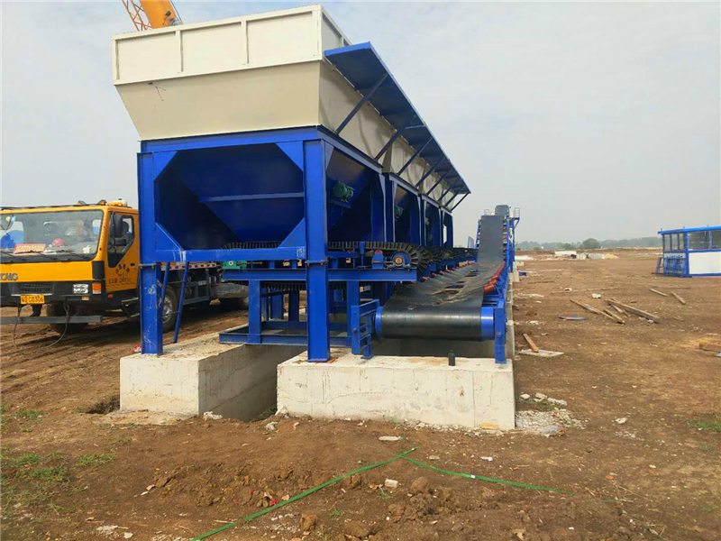 5、儲料倉裝置系統(tǒng):雙卸料儲料倉、斜皮帶機(jī)、空壓機(jī)。